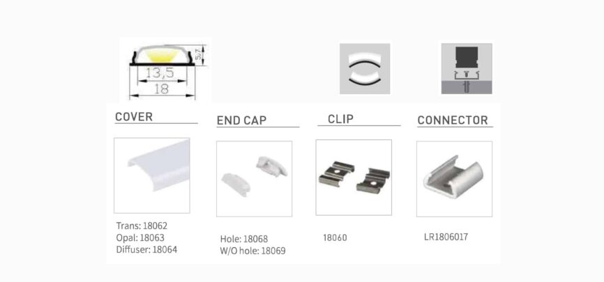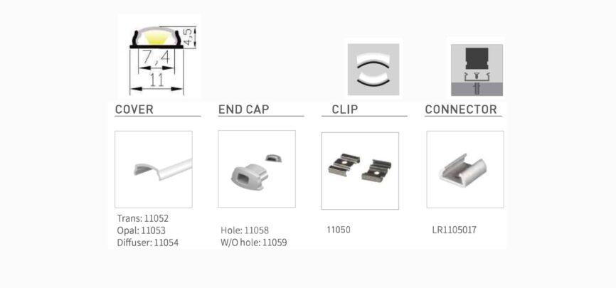Transparent and Opal PC covers/ diffusers with surface mounting accessories help to form uniform lighting. Made available with high-grade aluminium AL6063-T5 and powder coated in silver/black/white finishes. These profiles will add a touch of class to your home or office.