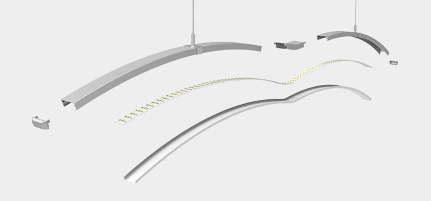 We have an extended range of bendable/wave profiles in various shapes to provide a solution to any interior decoration need, adapting to any type of curved wall or pillar. Cutting these profiles in different lengths can form curves and arcs for various architectural applications. So whether you’re a lighting designer, architect, or commercial building owner, we’ve got the perfect bendable profile for you.