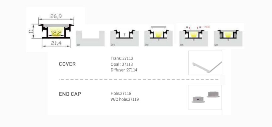 - Recessed Floor Linear Profiles: Concealed LED channels installed under tile or hardwood to form light strips that blend into the floor surface (e.g. RLL‑231‑UL2126, RLL‑233‑UL3020 from RHEA) (rhealedlinear.com).