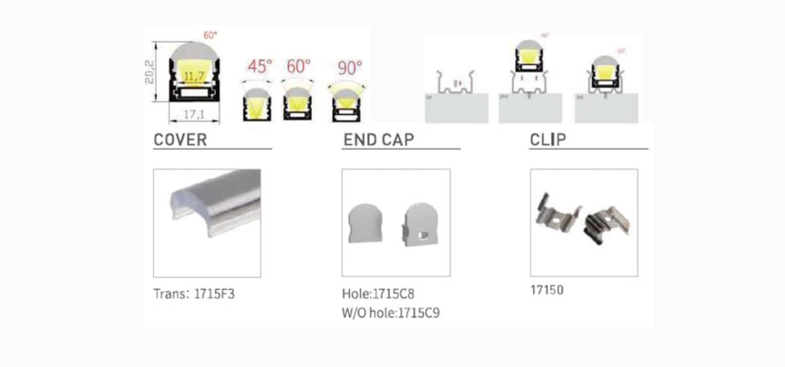 Made available with high-grade aluminium AL6063-T5 and powder coated in silver/black/white finishes. Combining different types of profiles with LED strip lights can create infinite architectural lighting effects. Application of the lensed LED profile can also be in wardrobes, cabinets, retail outlets. With a combination of beam angles, mounting accessories & PC covers one can create uniform lighting.