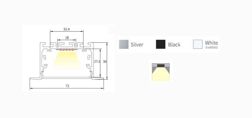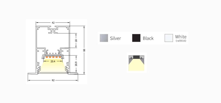 Transparent and Opal PC covers/ diffusers with surface mounting accessories help to form uniform lighting. The steel wires allow the user to use the profile as a pendant light as well. Made available with high-grade aluminum AL6063-T5 and powder coated in silver/black/white finishes. Combining different types of profiles with LED strip lights can create infinite architectural and interior lighting solutions.