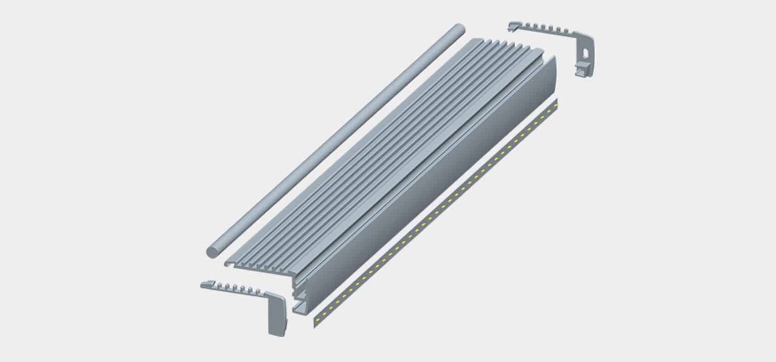 - Low-profile extruded aluminium channels (e.g. RLL‑345‑M7598, RLL‑344‑M1519) that integrate discreetly into treads, risers or underhandrails (rhealedlinear.com, wired4signsusa.com).